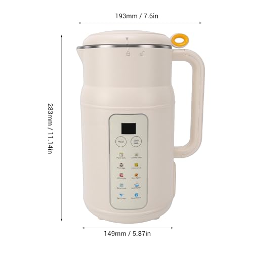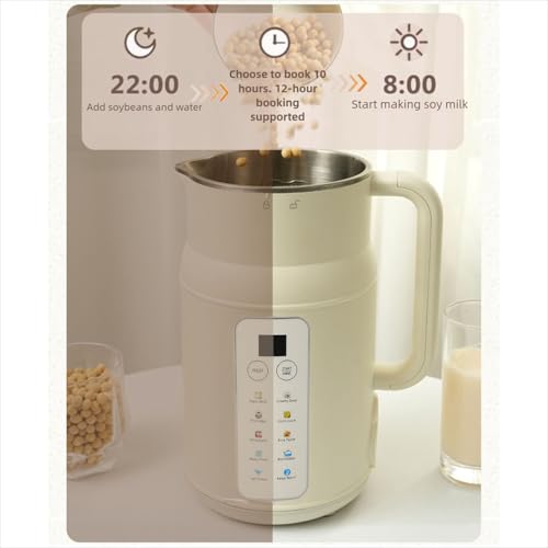 - [ & Durable Design] This nut milk maker features a fully construction allowing you to wash the entire unit safely after use. the premium abs and sus materials ensure long-lasting durability while maintaining food safety standards. enjoy worry-free operation with this sturdy appliance designed for daily use in your kitchen., [Versatile Large Capacity] With its generous 1200ml container this machine handles all your nut milk needs for the whole family. perfect for making almond soy oat or cashew milk in batches. the compact design fits conveniently on countertops while the 2050g weight provides stability during operation. includes all accessories for immediate use., [Quiet High-performance Blending] Experience professional-grade blending with our advanced quiet crushing technology that operates at just the right noise level. the powerful 150w mixing motor combined with 800w heating delivers smooth perfectly textured nut milks while preserving nutrients. create silky almond cashew or soy milk without disturbing your household., [Smart Timing Control] Take full control of your blending process with the intuitive timing feature. customize operation periods from 40-70°c with default 50°c setting for optimal results. the automatic 6-hour programming makes meal prep effortless while the clear display keeps you informed throughout the process., [ Materials] Crafted from food-grade abs and sus304 stainless steel this blender guarantees toxin-free operation. the smooth surfaces and detachable parts make remarkably simple just rinse under water after use. spend less time on maintenance and more time enjoying your homemade beverages.