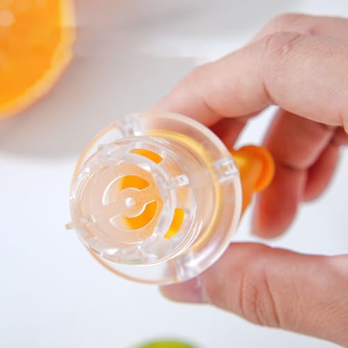 - Precision Filtration System: This lemon squeezer manual incorporates a precision filtration system with a 360-degree filter mesh to intercept fibers seamlessly, eliminating the need for secondary filtration while simplifying the process of extracting pure juice, Efficient Juice Transfer: Designed with a funnel-style outlet and advanced anti-splash mechanics, this lemon juicer allows users to pour juice effortlessly into narrow containers, preventing drips and maintaining a clean area, Heatproof Functionality: Featuring a heat-resistant design, the Hand Juicer Squeezer handles boiling water conditions up to 100, preventing damage during sanitization or hot liquid handling, enabling seamless juicing of citrus fruits, Effortless Cleaning Solution: The handheld lemon squeezer features a detachable structure that ensures no cleaning dead corners, allowing it to rinse clean in just 10 seconds for convenient use during picnics or kitchen prep, saving time and effort, Enhanced Grip Design: With its spiral gripping design, the lemon squeezer maximizes juice yield by firmly securing citrus fruits during use, which not only boosts efficiency but also simplifies preparing beverages for breakfast or casual refreshments