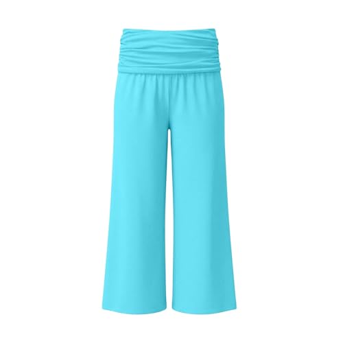 Blue Girls Flared Leggings Age 5-6 6-7 7-8 8-9 9-10 11-12 Years High Waisted Tummy Control Yoga Pants for Kids Yellow Khaki Green Beige Breathable Stretchy School Trousers Suitable for Dance