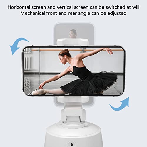 - [AI FACE RECOGNITION & SMART TRACKING] The Smart Tracking Phone Holder features advanced AI face recognition technology that automatically detects and follows your face in real-time. Enjoy seamless intelligent tracking without any delay, ensuring you stay perfectly framed during videos, live streams, or video calls. No more manual adjustments needed for a professional recording experience., [360 DEGREE ROTATION & FLEXIBLE ANGLES] Experience unparalleled flexibility with 360-degree horizontal rotation and 37-degree top/bottom view adjustments. This phone holder provides and precise movement to capture every angle effortlessly. Whether you're overhead tutorials or low-angle shots, this stand adapts to your creative needs with ease., [VERSATILE SCREEN ORIENTATION] Switch between horizontal and vertical screen modes instantly to match your content requirements. The mechanical front and rear angle adjustments allow for perfect positioning in any scenario. From landscape gaming sessions to portrait-mode selfies, this holder accommodates all your smartphone usage preferences., [UNIVERSAL COMPATIBILITY & PLUG-AND-PLAY] Works effortlessly with all smartphone types without requiring any app downloads or Bluetooth connections. Simply place your phone and start recording immediately. The sturdy ABS construction ensures durability while maintaining a lightweight design that's perfect for daily use with any device., [PORTABLE DESIGN & LONG BATTERY LIFE] Designed for on-the-go creators, this compact phone stand comes with a Type-C charging cable and features a built-in 2400mAh battery providing up to 6 hours of continuous operation. Its travel-friendly size makes it ideal for vlogging outdoors, live streaming at events, or video calling while traveling. The oxidation-proof materials ensure longevity in various environments.