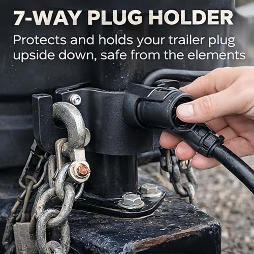 - 【Keep Your Towing Gear Organized and Road-Ready】Messy chains and loose plugs don't belong on a clean towing setup. This rv towing chain organizer & 7-way plug holder brings order to your hitch area with a simple, sturdy design that keeps everything in its place. No more untangling chains or hunting for the trailer plug when you need it., 【Built to Last in Any Weather】Crafted from high-hardness aluminum, this aluminum rv towing chain organizer & 7-way plug holder resists rust and stands up to sun, rain. It's heavy-duty without being heavy—just the kind of gear you want between your rig and the road., 【Chains Organized. Plug Protected.】The towing chain organizer side keeps your safety chains neatly stored and tangle-free, so you're not wrestling with them before every hookup. The built-in 7-way plug holder cradles your trailer plug securely, preventing damage while you roll., 【Mounts Right on the Tongue Jack】This rv chain and plug holder attaches directly to your camper's tongue jack, turning unused space into a tidy storage spot. No drilling into the trailer frame, no extra brackets—just a clean, space-saving solution that works with most RV and trailer setups., 【One Accessory, Complete Setup】Whether you're rolling out for a weekend trip or storing the trailer between seasons, this trailer towing chain organizer keeps essential gear where it belongs. It's the kind of simple upgrade that makes every hookup a little faster and every drive a little more secure.