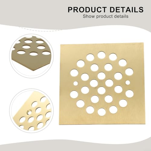 FABULETTA Screw in Floor Drain Cover, 304 Stainless Steel Square Shower Drain Grate, 1.8mm Thick Anti-Clog Bathroom Floor Leakage Cover with 10mm Holes for 4-14 Inch(Square - Gold)
