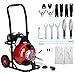 - general Pipe Compatibility: Effectively clears blockages in 1"–4" pipes, perfect for toilets, sinks, showers, floor and main drains in both residential and commercial settings., Automatic Feed & Foot Pedal: Features smart auto-feed/retract cable with a pneumatic foot switch, enabling hands-free, accurate, and safe operation for faster and effortless drain cleaning., Heavy-Duty Steel Cable & Motor Choices: Choose from 75' or 100' rust-resistant durable steel cables (3/8" for 1"–3", 1/2" for 2"–4") and three motor options (200W/250W/370W) to match any clog severity., Complete Cutter Kit Included: Comes ready with 8 interchangeable cutting heads, storage hooks, and guide tubes to tackle hair, grease, paper, and roots for various drain cleaning needs., Portable, Ergonomic Design: Shock-absorbing wheels and a retractable handle ensure easy transport over stairs and rough terrain, minimizing operator fatigue and simplifying storage.