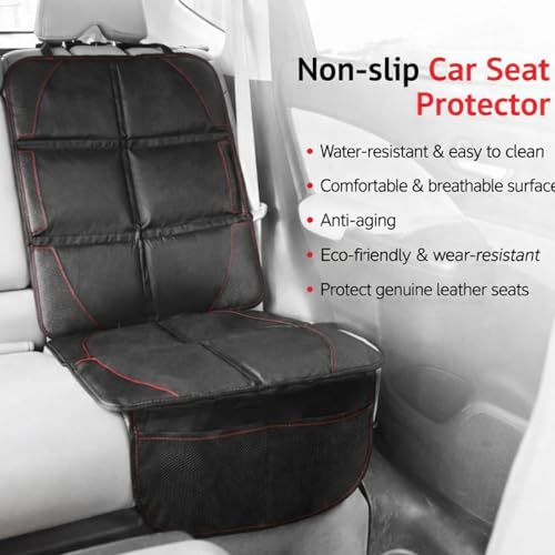 - đăCompatible Modelsă: Car Seat Protector Covers for Child for Skoda Citigo Enyaq Fabia Felicia Kamiq Karoq Kodiaq . Children car seat pad for infant seats, for dog mats & child seating., đăDurable Materială: This car seat mat is made of durable Oxford cloth and leather, and is water-resistant and tear-resistant. It promotes air circulation, keeping you cool in summer and comfortable in winter., đăProtect Your Car Seată: Designed to prevent unsightly indentations from kids booster car seat and pet claws while driving Our heavy-duty material acts as a robust seat protector for car seat, safeguarding your vehicle's upholstery from stubborn stains, scratches, and daily wear and tear, ensuring your interior remains in pristine condition for years to come., đăSafeguarded Designă: The child car seat protector features an adjustable harness that snaps the top around the headrest, tucks the back liner non-slip pad into the seat, non-slip dots on the back provide extra grip, no need to worry about the seat protector slipping out of the car seat, and the premium leather corner seals ensure that your child's car seat stays in place., đăConvenient Storage with Mesh Pocketsă: Maximize your vehicle's organization with this carseat protector for car, which includes two thoughtfully integrated mesh pockets on the back These handy compartments offer convenient storage space for children's toys, snacks, tablets, or other baby car essentials must haves By keeping frequently used items within easy reach, you can maintain a tidy and clutter-free interior.
