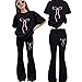 Girls Bow Outfits Kids 2 Piece Clothing Set Teens Summer Short Sleeve T Shirt Flare Pants Sets School Casual Sweatsuits Cute Soft Cotton Breathable Tracksuit,Black, Size 11-12 Years
