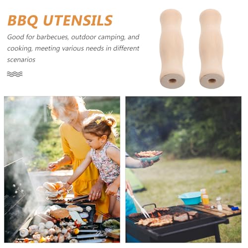 Hemobllo Bbq Utensil Handles 4Pcs Wooden Kitchenware Handles with Easy-Clean Surface for Outdoor Camping