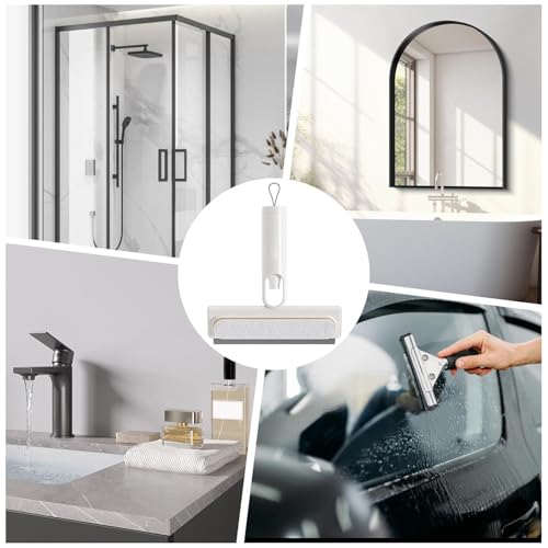- Use at Ease: This window cleaning scraper is engineered with an ergonomic design to provide a secure and comfortable grip, enabling effortless use when paired with the squeegee cloth sprayer combo, which simplifies the process of achieving streak-free glass in homes or commercial spaces, Smooth Gliding Performance: The ergonomic handle of the window cleaner squeegee allows for effortless movement across glass surfaces, ensuring optimal cleaning results with minimal effort, perfect for maintaining spotless panes in homes or offices, Innovative Built-in Reservoir: With its innovative built-in reservoir, the squeegee for window cleaning simplifies the task of window maintenance by integrating a spray scrub squeegee function, enhancing efficiency when tackling large or small cleaning projects alike, Time-Saving Cleaning Solution: The innovative swivel head of this window cleaning tool allows it to access hard-to-reach corners, effectively removing water drops and ensuring a streak-free shine in significantly less time, perfect for busy households or commercial spaces, Versatile in Uses: The glass scraper is designed to clean smooth hard areas effectively, removing stubborn dirt on tile and glass with ease while ensuring a streak-free finish; its adaptability extends to car window cleaning and shower glass maintenance, making it a important multi-area use tool for households and vehicles alike, enhancing cleanliness in various settings without hassle