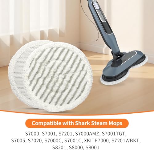 - 【Perfect Fit for Shark Steam Mop】: Designed for Shark S7000, S7001, S7201, S7000AMZ, S7001TGT, S7005, S7020, S7000C, S7001C, XKITP7000, S7201WBKT, S8201, S8000, S8001. These replacement pads for Shark steam mop lock securely in place for a perfect fit, 【Deep Clean with Dual-Material Design】: Our pads for Shark steam mops combine super-absorbent microfiber with a scrub mesh. This powerful duo lifts stuck-on dirt and promotes efficient steam flow for a thorough clean, 【Highly Absorbent & Fast-Drying】: The premium microfiber in these steam mop pads for Shark units quickly soaks up spills and dries fast, preventing streaks and dampness for a spotless, quick clean, 【Reusable & Economical 8-Pack Value】: Save money & reduce waste. This 8-pack of replacement pads for Shark steam mop is machine washable and reusable, offering exceptional long-term value for your home, 【For Wood, Tile, Marble, Concrete, Vinyl & Carpet】: Versatile mop pads for Shark cleaners are safe and effective on all these surfaces: wood, tile, marble, concrete, vinyl, and carpet for whole-home cleaning