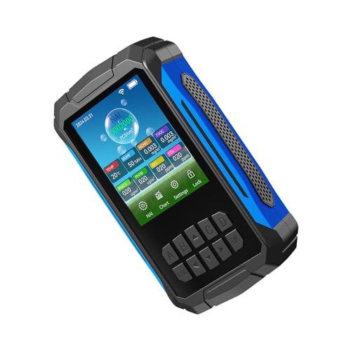 - [ADVANCED DETECTION TECHNOLOGY] Monitors negative ion concentration, temperature, humidity, VOC, and various particle levels with ., [CLEAR DISPLAY SCREEN] 2.8 inch screen offers a detailed view of all data, including real-time negative ion level curves., [LONG-LASTING RECHARGEABLE BATTERY] Built-in 2000mAh battery with adjustable brightness and auto-shutdown feature for convenience., [PERSONALIZED ALARMS] Easily set customizable alarm values for different detection parameters and manually control the buzzer., [SIMPLE OPERATION] No complicated apps or Wi-Fi required. Activate the meter for automatic environment measurement suitable for all users.
