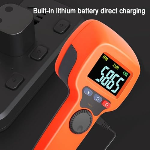 - Touchless Tach Gauge: This device utilizes LED technology to create a stroboscopic effect for accurately measuring rotational speed or frequency up to 99999 RPM with 0.001% precision., Adjustable Strobe Frequency: The strobe frequency can be easily adjusted using the 360 degrees dial, allowing the moving object to appear stationary or slow-moving for easier observation., High-Performance LED: Featuring 1500 lux LEDs and a matrix structure with 16 lamp beads, the strobe light provides a longer illumination range, brighter flashes, and improved accuracy in positioning., Real-time Observation: This LED stroboscope measures the speed of fast-rotating objects without the need for reflective tape, enabling real-time visual observation of rotating motion., Versatile Application: The digital handheld stroboscope is designed for measuring rotational speed or vibration frequency of rotating equipment, helping to identify defects and locations without direct contact or halting operation.