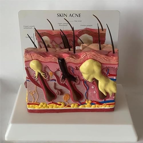 - COMPREHENSIVE 4-LAYER ANATOMY – This enlarged skin model consists of the epidermis and dermis, totaling 4 distinct layers. It clearly displays the hierarchical structure of the skin, along with subcutaneous tissue connected to deeper structures. Skin appendages including hair, sebaceous glands, sweat glands, and nerve endings are all accurately represented., HIGH-QUALITY PVC CONSTRUCTION – Made from new PVC material with no unpleasant odor. The materials and colors are strictly controlled for consistency. The model is easy to clean, resistant to high temperatures, realistic, and odorless, ensuring safe and worry‑free use in any educational environment., DETAILED TEXTURE & ANATOMICAL FEATURES – The surface texture clearly reveals hair, hair follicles, fat (sebaceous) glands, sweat glands, skin receptors, nerves, and blood vessels. This exceptional level of detail helps learners identify each structure with ease., EFFECTIVE VISUAL TEACHING AID – Designed to teach the structure of the skin, this model deepens students’ understanding of both skin physiology and broader human body functions. It significantly enhances the learning effect by making complex concepts tangible and observable., WIDE APPLICATION FOR MEDICAL EDUCATION – Perfect for use in schools, hospitals, and physical health teaching. Serves as an excellent teaching aid for anatomy and physiology courses, a research display tool, and even laboratory decoration supplies. Ideal for instructors and students alike.