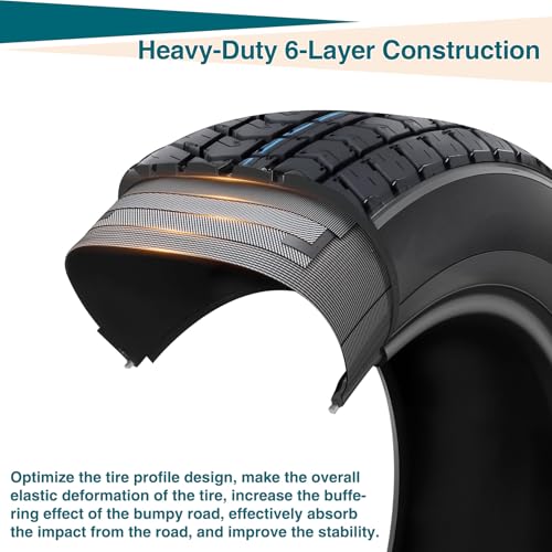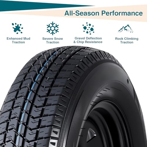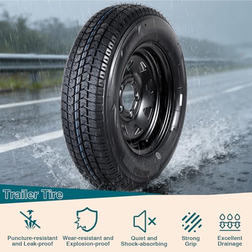 - 【Comprehensive Size Selection for Diverse Requirements】We provide a complete lineup of trailer tire sizes, such as 4.80-8, 4.80-12, 5.30-12, ST175/80D13, ST205/75D14, and ST205/75D15. Available with 4-lug and 5-lug rims in various bolt patterns, finding the ideal replacement tire for your trailer is quick and hassle-free., 【All-Weather Reliable Traction】Crafted from high-grade rubber material and featuring a deep, rugged groove design, these trailer tires deliver outstanding grip and stability on any surface—whether it’s wet, dry, muddy, or rough terrain. They maintain consistent traction in rain, sunshine, and all seasonal conditions, ensuring smooth towing., 【Top-Tier Quality & Long-Lasting Durability】Equipped with heavy-duty nylon cord layers, a bias ply structure, and reinforced sidewalls, our tires boast excellent puncture resistance, wear resistance, and a prolonged service life. They are specifically designed to handle the demands of heavy-duty hauling with ease., 【Improved Safety & Blowout Prevention】The reinforced tire structure and optimized groove design work together to evenly distribute weight and reduce stress on the tire. This effectively minimizes the risk of blowouts during high-speed or long-distance towing, keeping your journey safe and worry-free., 【Broad Compatibility & Versatile Applications】Our trailer tires and rims are compatible with most utility trailers, boat trailers, campers, cargo trailers, farm trailers, landscape trailers, and haulers. They offer reliable performance for both personal daily use and commercial heavy-duty operations.