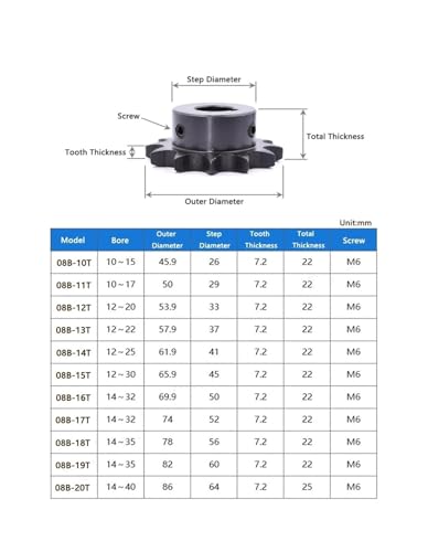 1pc 10T-20T 08B Industrial Drive Sprocket Wheel 45# Steel Chain Gear 10 11 12 13 14 15 16 17 18 19 20 Teeth Keyway Bore 10-35mm(40mm (keyway 12mm),15 Teeth)