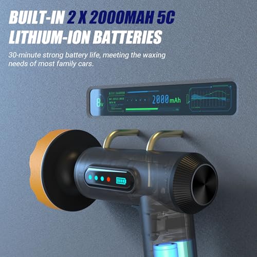 - Cooling Fan Blades: Built-in cooling fan blades stop overheating, extending the motor's lifespan and making extended usage possible. Car Polishers and BuffersCar Polisher, 3 Pads: Includes three different pads tailored for various tasks like polishing, waxing, and detailing, ensuring perfect results for any surface. Cordless Car Buffer Polisher Car Polishers and Buffers, Digital Display: The easy-to-read digital display allows you to control speed settings and battery life, providing more accurate control for a perfect finish. Car Polisher Cordless Cordless Car Buffer Polisher, Cordless Convenience: The 2000mAh rechargeable battery provides the freedom to polish without the hassle of cords, allowing for greater mobility around your car. Cordless Polisher Car Polisher Cordless, Ergonomic Design: The lightweight and ergonomic design ensures comfort and ease of use, reducing fatigue during long detailing sessions. Polish Machine for Cars Cordless Polisher