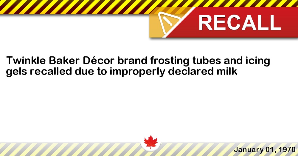 Twinkle Baker Décor brand frosting tubes and icing gels recalled due to improperly declared milk.