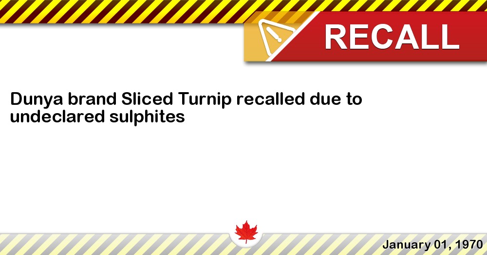 Dunya brand Sliced Turnip recalled due to undeclared sulphites